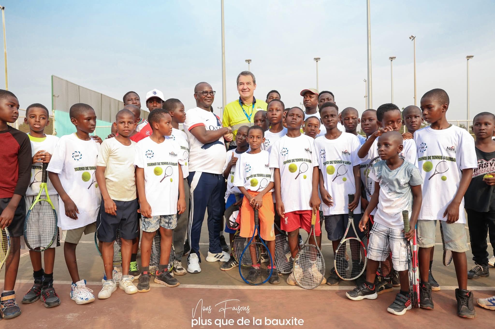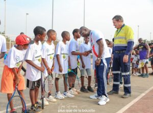La délégation s’est ensuite rendue sur les courts de tennis pour assister aux rencontres amicales opposant les familles des collaborateurs de la CBG à celles de Nimba Mining Company. Organisé du 24 au 31 janvier 2026, ce tournoi s’inscrit dans une dynamique de renforcement des liens d’amitié entre les deux entreprises partenaires. Au-delà de l’enjeu sportif, l’initiative met en avant le sport comme vecteur de fraternité, de partage et de cohésion entre les familles des deux entités.