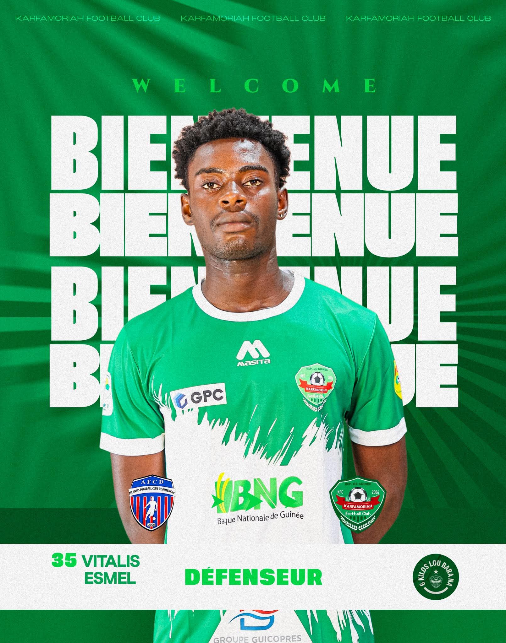 Le Karfamoriah Football Club a officialisé l’arrivée du défenseur ivoirien Vitalis Esmel, en provenance de l’Atlantis FC de Dimbokro, pensionnaire de la deuxième division ivoirienne. Le joueur s’est engagé avec le club de Ligue 1 guinéenne pour une durée d’un an et demi.