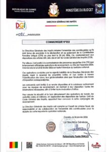 Signé à Conakry le 26 janvier 2026, ce communiqué marque une étape clé dans le renforcement du dispositif fiscal lié au foncier et dans l’amélioration de la mobilisation des ressources publiques.