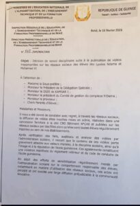 Selon les autorités éducatives, les séquences, filmées dans une concession familiale située à la cité CBG, présentent des mises en scène considérées comme contraires aux valeurs morales, à la discipline scolaire et à l’image de l’école guinéenne. Des vérifications et auditions menées par l’administration ont confirmé l’implication directe des élèves concernées.