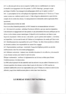Dans un communiqué rendu public, le SNE dit prendre acte de cette décision tout en saluant la volonté des autorités éducatives de prévenir toute récidive. Toutefois, le syndicat estime que les mesures prises soulèvent de sérieuses interrogations quant à leur portée pédagogique et leur légalité.