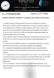 Tout en reconnaissant la proactivité des autorités, le SNE les exhorte à ne pas céder à la pression émotionnelle et à la clameur populaire des réseaux sociaux dans la prise de décisions sensibles. Le syndicat affirme sa solidarité « indéfectible » envers les responsables du Lycée N’Dama et se réserve le droit d’engager toute action nécessaire jusqu’à leur rétablissement « plein et entier » dans leurs fonctions.