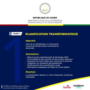 Premier axe retenu : faire de la planification un outil opérationnel. Le ministère entend dépasser la logique documentaire pour inscrire ses interventions dans une dynamique d’exécution territoriale. Cette orientation vise à soutenir les priorités nationales, notamment le programme Simandou 2040, tout en consolidant les politiques de développement local.