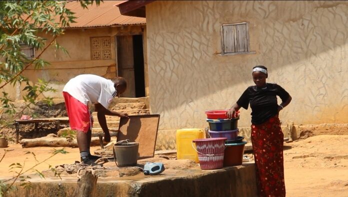 Une situation déjà préoccupante, mais qui prend une tournure critique en saison sèche. Les sources naturelles, notamment les rivières, s’assèchent progressivement, aggravant les difficultés d’approvisionnement. Dès les premières heures de la journée, de longues files d’attente se forment autour du seul point d’eau du village. Les habitants y passent parfois plusieurs heures pour obtenir quelques litres d’eau.
